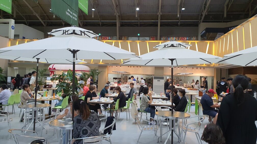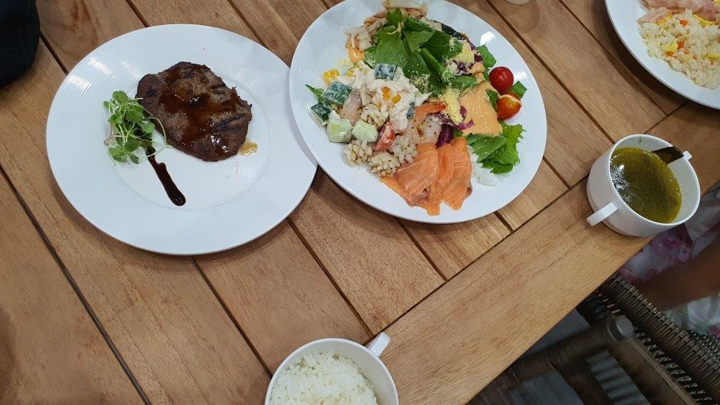 저희는 조식을 신청하여 아침부터 조식뷔페를 이용하였습니다. 조식 뷔페는 호텔 1층,2층,3층과 스키하우스에서 운영중이었습니다. 기존에는 호텔 3층에서만 운영하였지만 이용 고객이 많아져서인지 스키하우스까지 영역을 넓혔습니다. 고급 스러운 호텔의 분위기도 좋지만 저희는 넓게 탁 트인 스키하우스가 좋아 올 때마다 스키하우스에서 이용하는 편입니다. 메뉴는 국과 셀러드의 차이가 조금 있을 수 있다고 합니다. 또 달라진 점은 스테이크를 1인당 1번씩만 먹을 수 있었는데 이제는 원하는 만큼 가져다 먹을 수 있게 되었네요. 한식, 양식과 쌀국수, 빵, 씨리얼 디저트 등이 준비되어 아이들도 먹을 것이 많아 온 가족이 맛있게 아침을 즐길 수 있었습니다.