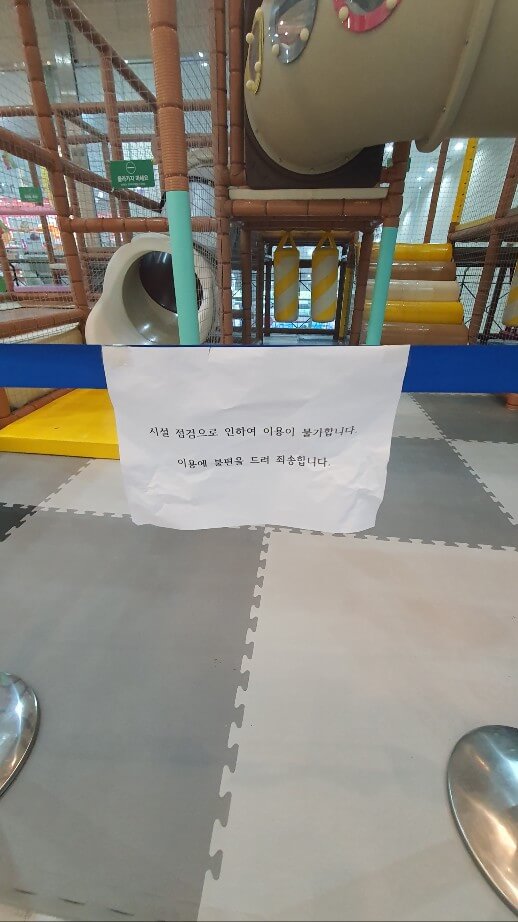물놀이를 마치고 나면 딸아이가 꼭 들르는 작은 키즈카페가 마련되어있는데요. 이번에는 아쉽게도 시설 정비중으로 이용이 불가했습니다.