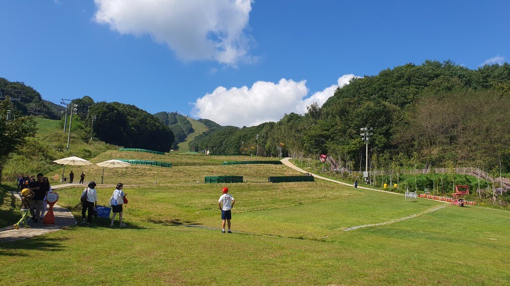 그 옆으로는 루지를 운영하고 있었습니다. 아이와 함께 탈 수 있고 초급 슬로프를 꼬불꼬불 내려오는 코스였습니다. 이번에 가보지는 못했지만 곤도라도 운영중이니 산 정상에서 바람을 맞는 것도 좋은 즐길 거리가 될 것 같습니다. 이것으로 즐거운 늦여름겸 가을 여행을 마쳤습니다. 텐트에서 진행하는 베베큐 파티 등 못 전해드린 이야기들도 있으니 더 자세한 내용은 휘닉스파크 홈페이지에서 확인해 보시기 바랍니다. 모두 행복한 여행 하세요!